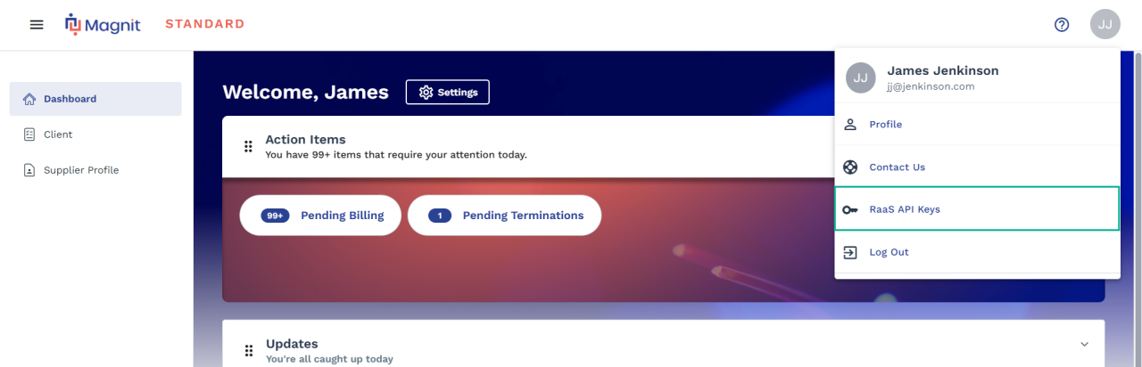 Magnit Reporting as a Service (RaaS) supports asynchronous API calls for report data retrieval. Our API uses OAuth2.0 authentication and returns JSON, ensuring secure and efficient access to your data. This page is designed to guide individuals managing reports and technical teams integrating APIs through the functionalities and benefits of RaaS. This feature is available for Client and Supplier Users.